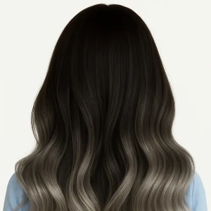 لون جريء وعصري، جذور سوداء غامقة تتدرج إلى سلفر فاتح بلمعة باردة، يطي مظهر ستايلش وملفت للنظر.
